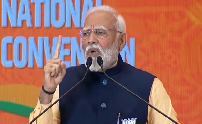 नई दिल्ली। भारतीय जनता पार्टी के दो दिवसीय राष्ट्रीय अधिवेशन के दूसरे दिन समापन सत्र को प्रधानमंत्री नरेंद्र मोदी ने संबोधित किया। पीएम मोदी ने लोकसभा चुनावों के लिए भाजपा