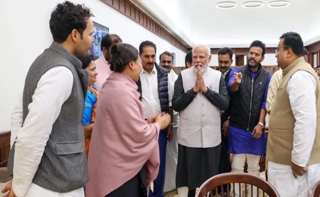 नई दिल्ली। प्रधानमंत्री नरेंद्र मोदी ने आज नए संसद भवन की कैंटीन में विभिन्न पार्टियों के सांसदों के साथ लंच किया। लंच से पहले पीएमओ की ओर से इन 8 सांसदों के पास फोन गया था कि पी