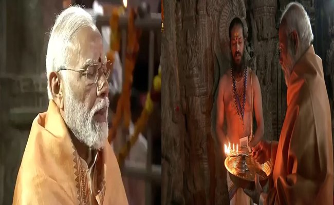 नई दिल्ली। प्रधानमंत्री नरेंद्र मोदी आज से दो दिन के केरल और आंध्र प्रदेश के दौरे पर है। इसी बीच पीएम मोदी ने आंध्र प्रदेश में स्थित लेपाक्षी के वीरभद्र मंदिर में पूजा-अर्चना