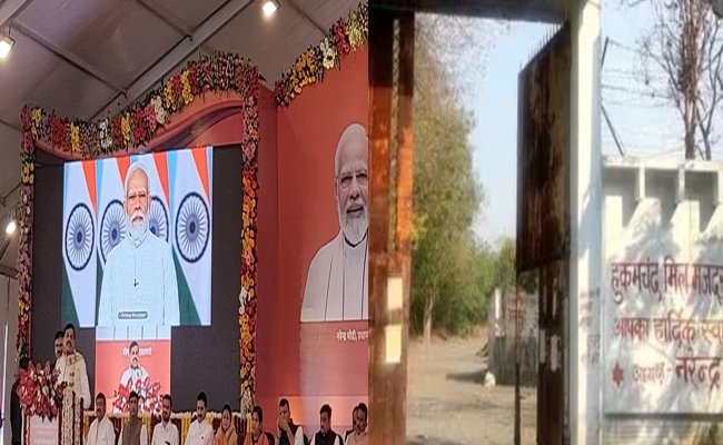 इंदौर। प्रधानमंत्री नरेंद्र मोदी ने सोमवार को सुशासन दिवस के मौके पर इंदौर की हुकुमचंद मिल के मजदूरों को तोहफा दिया। दरअसल, सुशासन दिवस के मौके पर आयोजित 'मजदूरों का हित, मजदू