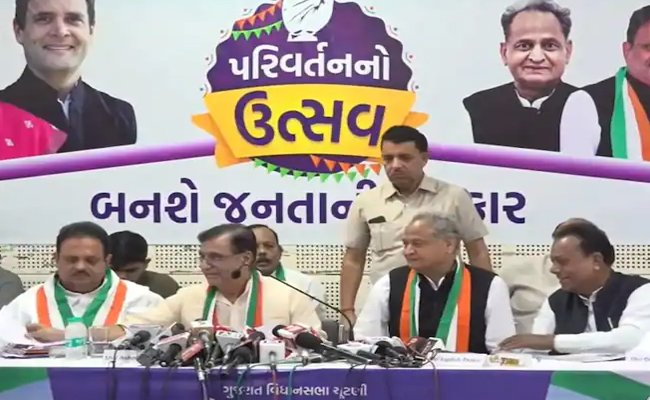 अहमदाबाद। गुजरात विधानसभा चुनाव के लिए कांग्रेस ने शनिवार को अहमदाबाद में अपना घोषणा पत्र जारी कर दिया है। घोषणा पत्र को राजस्थान के मुख्यमंत्री अशोक गहलोत ने गुजरात के कां