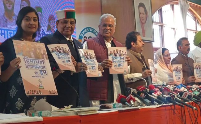 नई दिल्ली। कांग्रेस ने छत्तीसगढ़ के मुख्यमंत्री भूपेश बघेल की मौजूदगी में हिमाचल प्रदेश में 12 नवंबर को होने वाले विधानसभा चुनाव के लिए शनिवार को अपना घोषणापत्र जारी किया। का