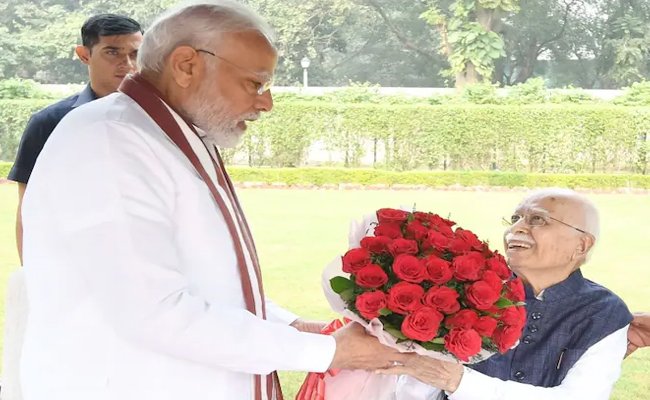 नई दिल्ली। प्रधानमंत्री नरेंद्र मोदी मंगलवार को वरिष्ठ भाजपा नेता लालकृष्ण आडवाणी के 95वें जन्मदिन पर उन्हें बधाई देने उनके आवास पहुंचे। इस दौरान रक्षा मंत्री राजनाथ सिंह भ