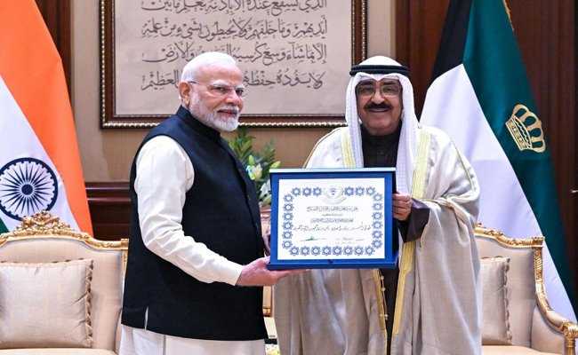 नई दिल्ली। भारत के प्रधानमंत्री नरेंद्र मोदी शनिवार से कुवैत की दो दिवसीय यात्रा पर हैं। पीएम मोदी को रविवार को कुवैत के अमीर के मुख्य महल ‘बायन पैलेस’ में गार्ड ऑफ ऑनर दिया ग