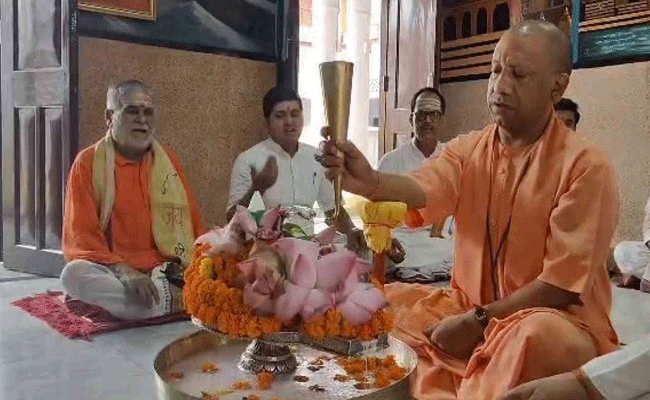 सावन के पहले दिन सीएम योगी ने गोरखनाथ मंदिर में किया रुद्राभिषेक