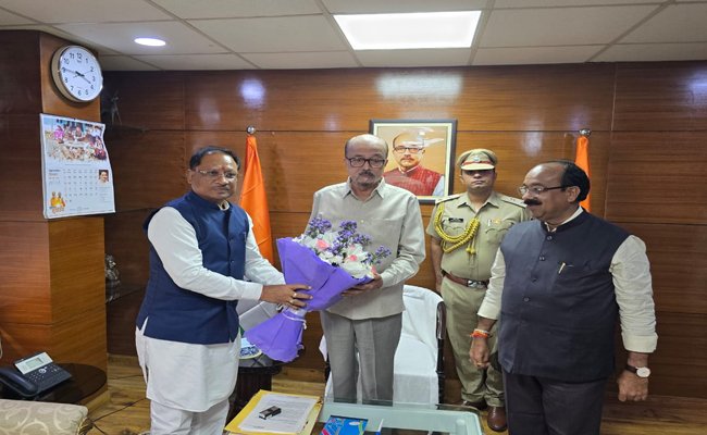 रायपुर। छत्तीसगढ़ के मुख्यमंत्री विष्णुदेव साय ने आज नई दिल्ली स्थित छत्तीसगढ़ भवन में राज्यपाल रमेन डेका से सौजन्य मुलाकात की। इस अवसर पर उपमुख्यमंत्री अरुण साव भी उपस्थित र