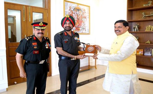 मुख्यमंत्री डॉ यादव से सेना के जनरल आफिसर कमांडिंग श्री प्रीतपाल सिंह ने की सौजन्य भेंट