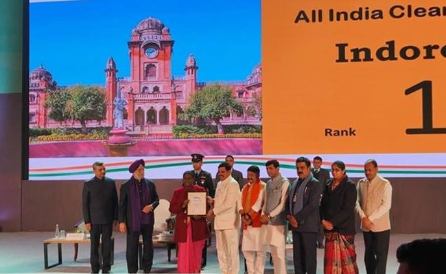 इंदौर लगातार सातवीं बार सबसे स्वच्छ शहर के रूप में सम्मानित