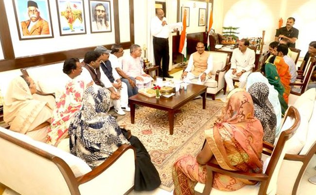 भोपाल। मुख्यमंत्री श्री शिवराज सिंह चौहान से सुबह निवास कार्यालय में सीहोर जिले की रेहटी नगर परिषद के अध्यक्ष श्री राजेंद्र मीना पटेल, उपाध्यक्ष श्रीमती अर्चना राजीव शर्मा