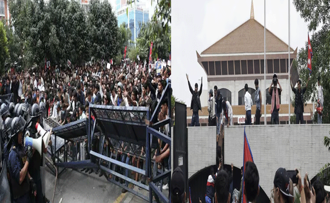 काठमांडू। नेपाल की केपी शर्मा ओली सरकार की ओर से सोशल मीडिया प्लेटफॉर्म्स पर बैन लगाने के खिलाफ प्रदर्शनकारियों ने सोमवार को राजधानी काठमांडू में संसद भवन पर धावा बोल दिया।