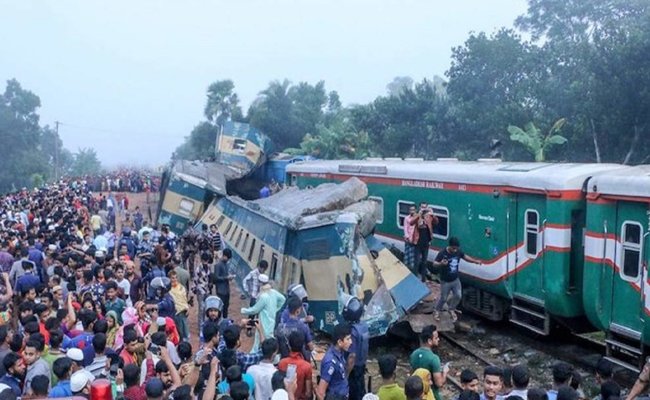 ढाका। बांग्लादेश की राजधानी ढाका के पास किशोरगंज में में बड़ा ट्रेन हादसा हुआ है, जिसमें 15 लोगों की मौत हो गई है और 100 से अधिक घायल बताए जा रहे हैं। जबकि बांग्लादेशी मीडिया के मु