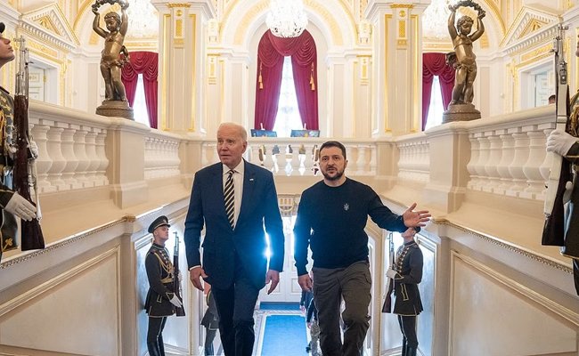 नई दिल्ली। यूक्रेन युद्ध की बरसी से पहले अमेरिका के राष्ट्रपति जो बाइडन कीव पहुंच गए हैं। यूक्रेन की राजधानी में बाइडन ने जेलेंस्की से मुलाकात की और कई अहम क्षेत्रों का जायजा